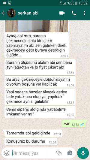 Covid-19 sürecinden dolayı üretimimize 2 hafta ara verdiğimiz tarihlerde (06-04-2020) E*** Y***&A*** D*** mağazamızdan alışveriş yaptı. Ürünlerimiz kişiye özel tasarım olduğu için müşterinin evine gidip ölçü almamız gerekiyordu ve müşteri evinde kiracısı olduğunu 20-04-2020 tarihinde evi boşaltıcağını söyledi, bizde pandemiden dolayı kiracısı olan evde ölçü almak istemediğimizi 21-04-2020 tarihinde eve gidip net ölçüleri alabileceğimizi müşteriye söyledik ve bu önemli detayları konuştuktan sonra sipariş sözleşmemizi hazırladık, ürünleri 07-05-2020 tarihinde teslim edeceğimizi belirtip sözleşmemizi imzaladık. 21-04-2020 tarihinde müşteri arayıp evin içinden kiracının çıkmadığını 30-04-2020 tarihinde taşınacağını fakat ölçü alımı için bu tarihe kadar bekleyemeyeceğini söyledi ve bizden gelip ölçü almamızı istedi, bizde pandemi sürecindeyken içi dolu evden ölçü alamıcağımızı ve 30-04-2020 tarihini bekleyip ölçüleri alabileceğimizi söyledik. Bunun üzerine müşteri benim elimdeki ölçüler doğru bu şekilde üretim yapabilirsiniz diyerek ısrar etti. Müşteriyi mağazamıza davet edip kendi vermiş olduğu ölçüler doğrultusunda yatak odası dolabının ve karyolanın çizimini yaptık ve üretim için müşteriden onayı aldık. 07-05-2020 tarihi geldiği zaman müşteriyi aradık ve ürünlerin hazır olduğunu teslimatı yapabileceğimizi söyledik. Müşteri evinin işlerinin daha bitmediğini söyleyip 15-05-2020 tarihinde ürünleri teslim alabileceğini söyledi. Oysaki 30-04-2020 tarihini bekleyip ölçüleri profesyonel şekilde aldırabileceğini, ürünlerin sözleşme tarihinden en fazla 1 hafta gecikeceğini belirtmemize rağmen kabul etmemişti. Ancak evlerinin tadilatını bitiremediklerinden dolayı ürünler yine sözleşme tarihinden 1 hafta geç teslim edildi. Eve ürünleri götürdüğümüzde yatak odası dolabının ve karyolanın yerine büyük geldiğini gördük ve müşteride hatanın kendisinde olduğunu kabul etti ama bu şikayeti yazan müşterinin eşi A*** D*** bu süreçten bizim firmamızı sorumlu tutmaya kalktı. Bu süreçte firma olarak bizim hatamız olmasa da yardımcı olmak adına yapmış olduğumuz dolabı kar amacı gütmeden değiştirebilceğimizi ve sadece malzeme ücretini talep edeceğimizi belirttik fakat bu teklifimizi müşteri kabul etmedi. Yatak odası bazasını bir sebep olmadan geri iadesini istediler anında geri iadesini yaptık. Ürünleri teslim ettikten sonra müşteri karyola ayak ucu modelinde değişiklik yapmak istedi istediği şekilde karyolanın ayak ucunu üretip teslim ettik ilk başta değişmesini istediği ayak ucunu bize geri iade etmediler buna bile sesimizi çıkarmadık. ''USTASI KÖTÜ ÖTESİ'' dediği çalışanımıza firmamızdan habersiz dolap ölçüsü aldırıp fiyat çıkarmasını istediler, madem bizim ustamız ve işçiliğimiz bu kadar kötü neden ustamızdan fiyat teklifi istediniz. Kanıtları ve WhatsApp görüntülerini ekte paylaşıyoruz. kötüçıktı.com firmasından firmamıza bilgi geldiği gün müşteriyi arayıp bizim ürünlerle ilgili sorununuz olduğunu bilmiyorduk ve bizimle bu konu hakkında iletişime geçmediklerini söylediğimizde biz sizi ararız dediniz ve geri dönüş yapmadınız.
